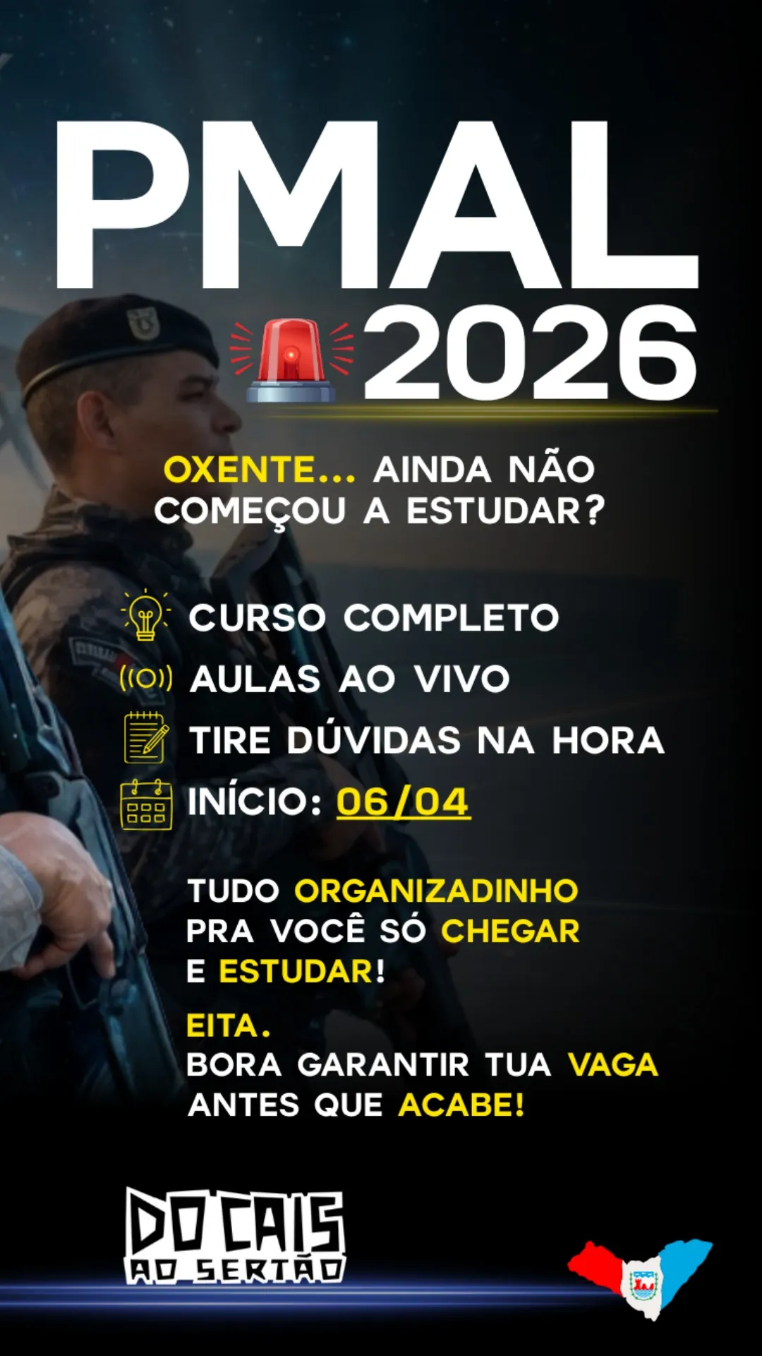 O curso preparatório para a PM de Alagoas do projeto Do Cais ao Sertão foi desenvolvido especialmente para quem busca uma preparação completa, organizada e com acompanhamento real de professores experientes.